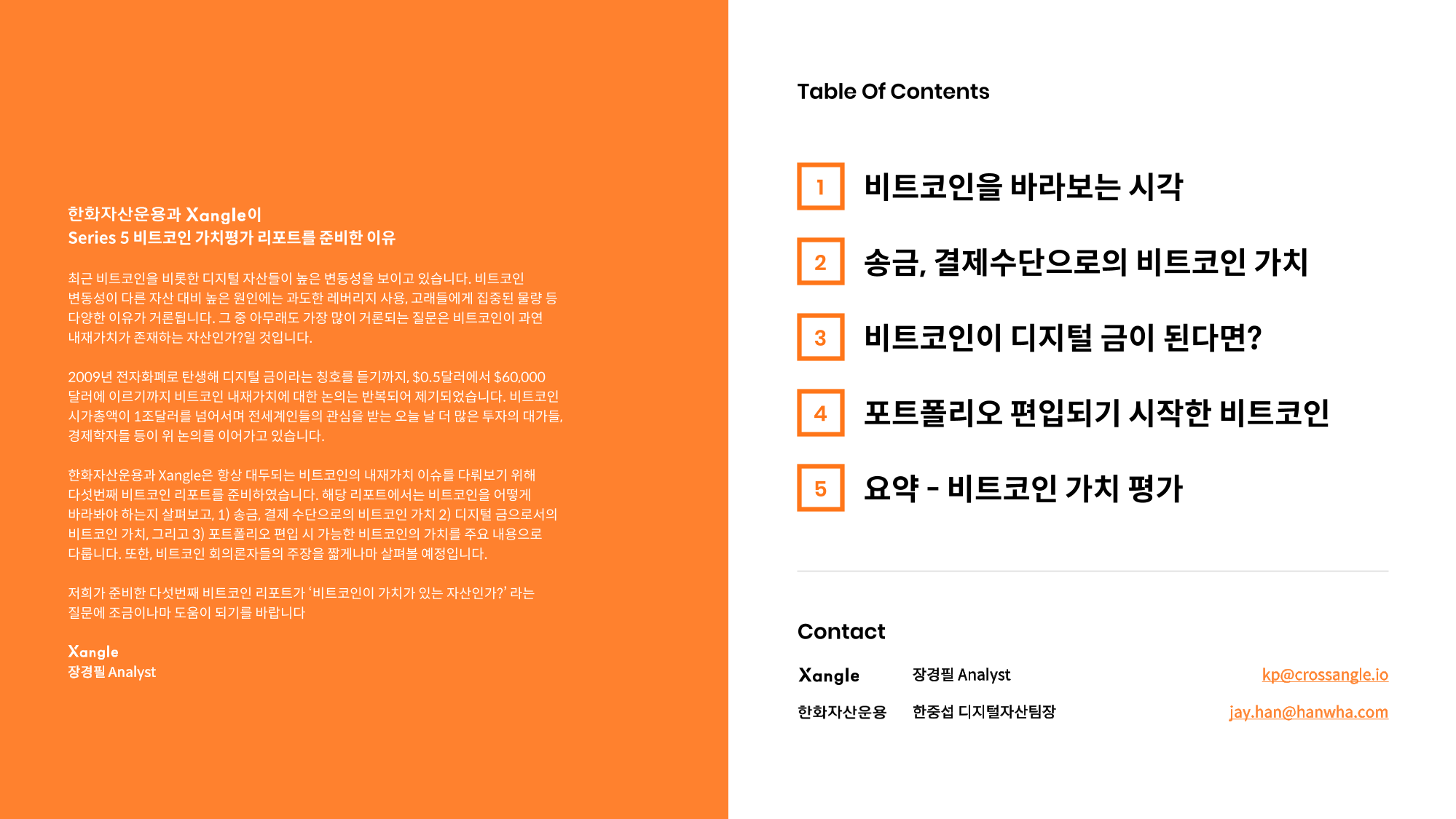 한화자산운용 x 크로스앵글 디지털 자산 리서치 Vol 5 비트코인 가치평가