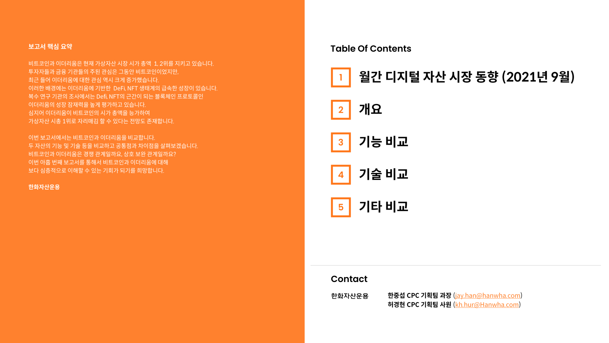 한화자산운용 x 크로스앵글 디지털 자산 리서치 Vol 9 비트코인 vs 이더리움