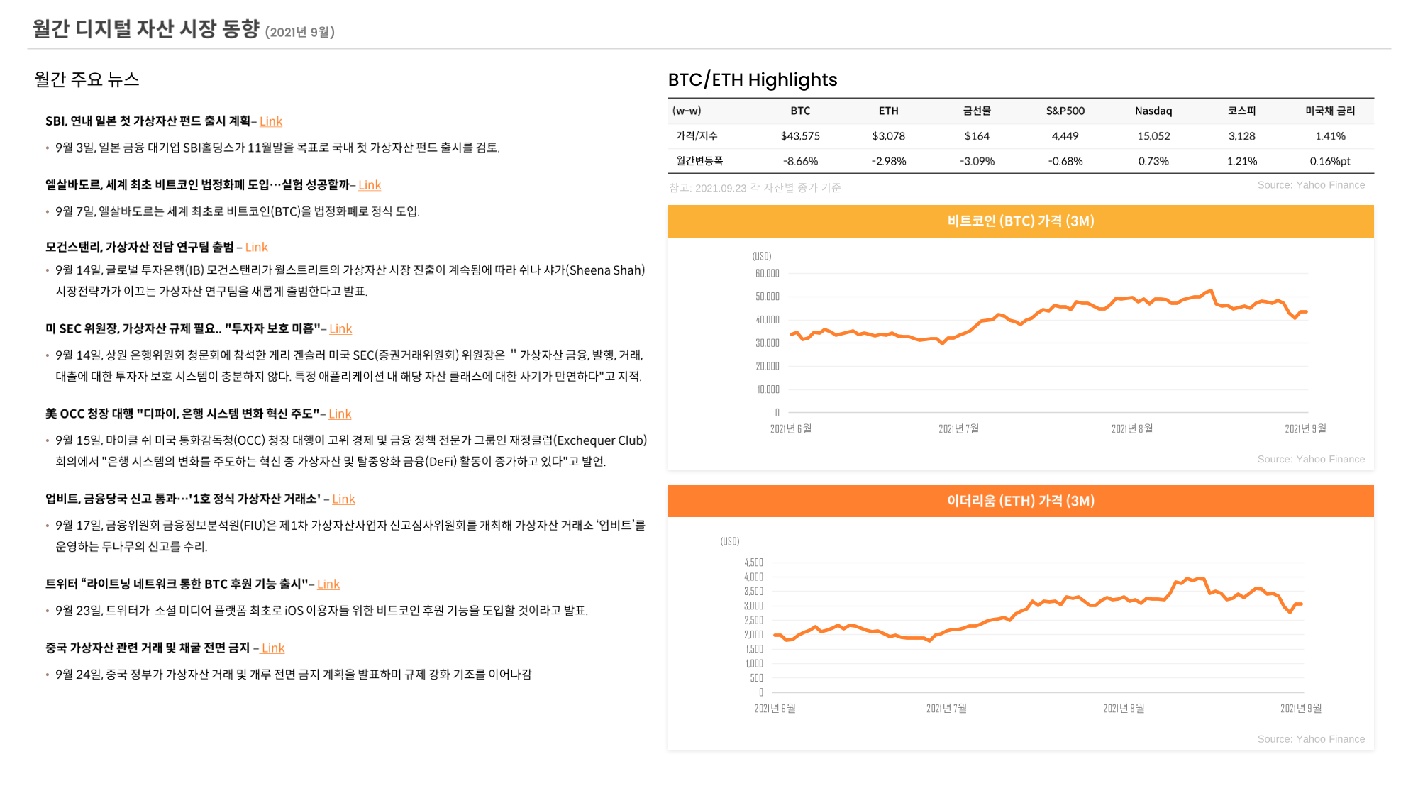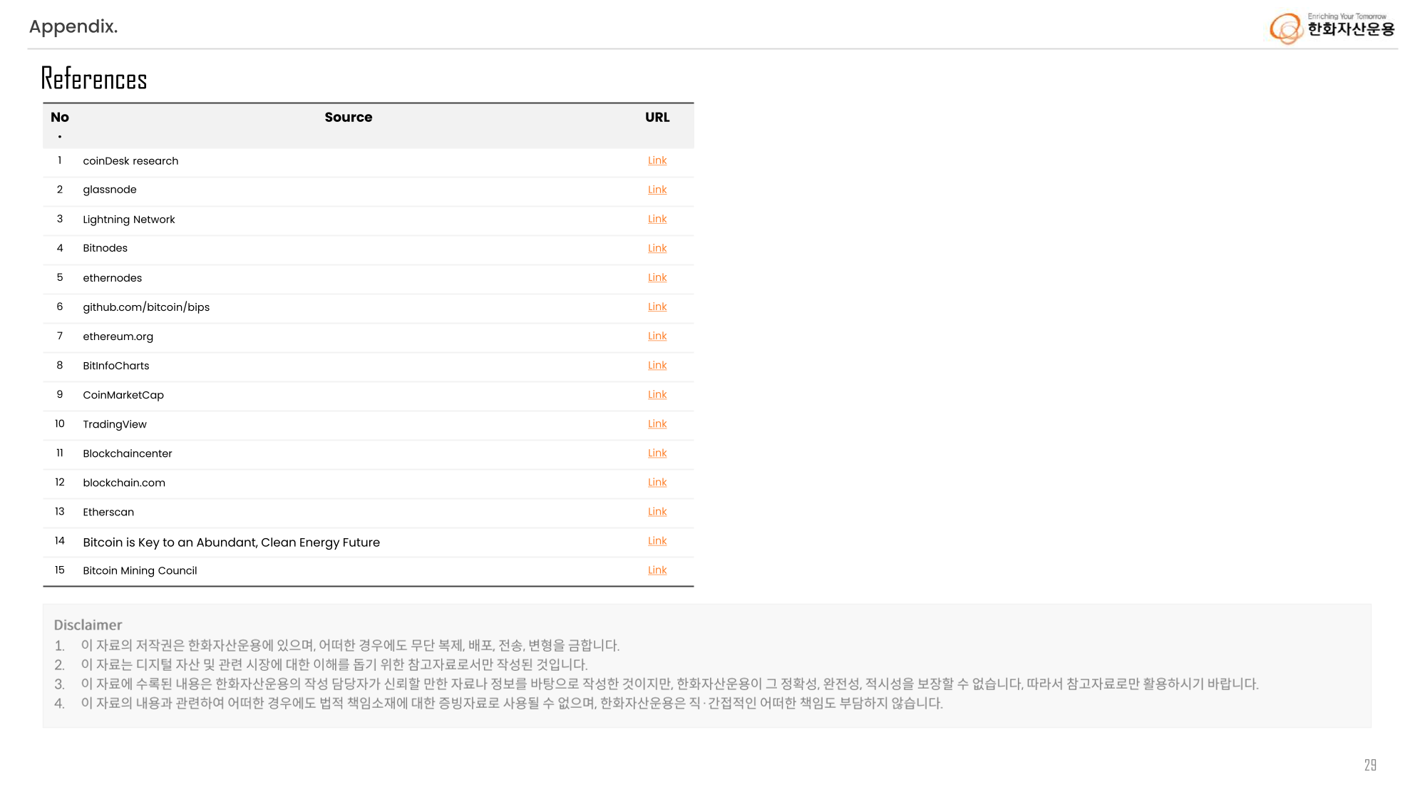 한화자산운용과 크로스앵글은 디지털 자산시장에 대한 심도있는 리서치를 통해 투기문화를 근절하고 객관적이고 신뢰할 만한 정보를 제공할 계획입니다. 양사가 협력하여 매달 디지털 자산 시장에 대한 보고서를 발간하고 관련 웨비나를 정기적으로 진행할 예정입니다. 많은 관심과 성원 부탁드립니다.