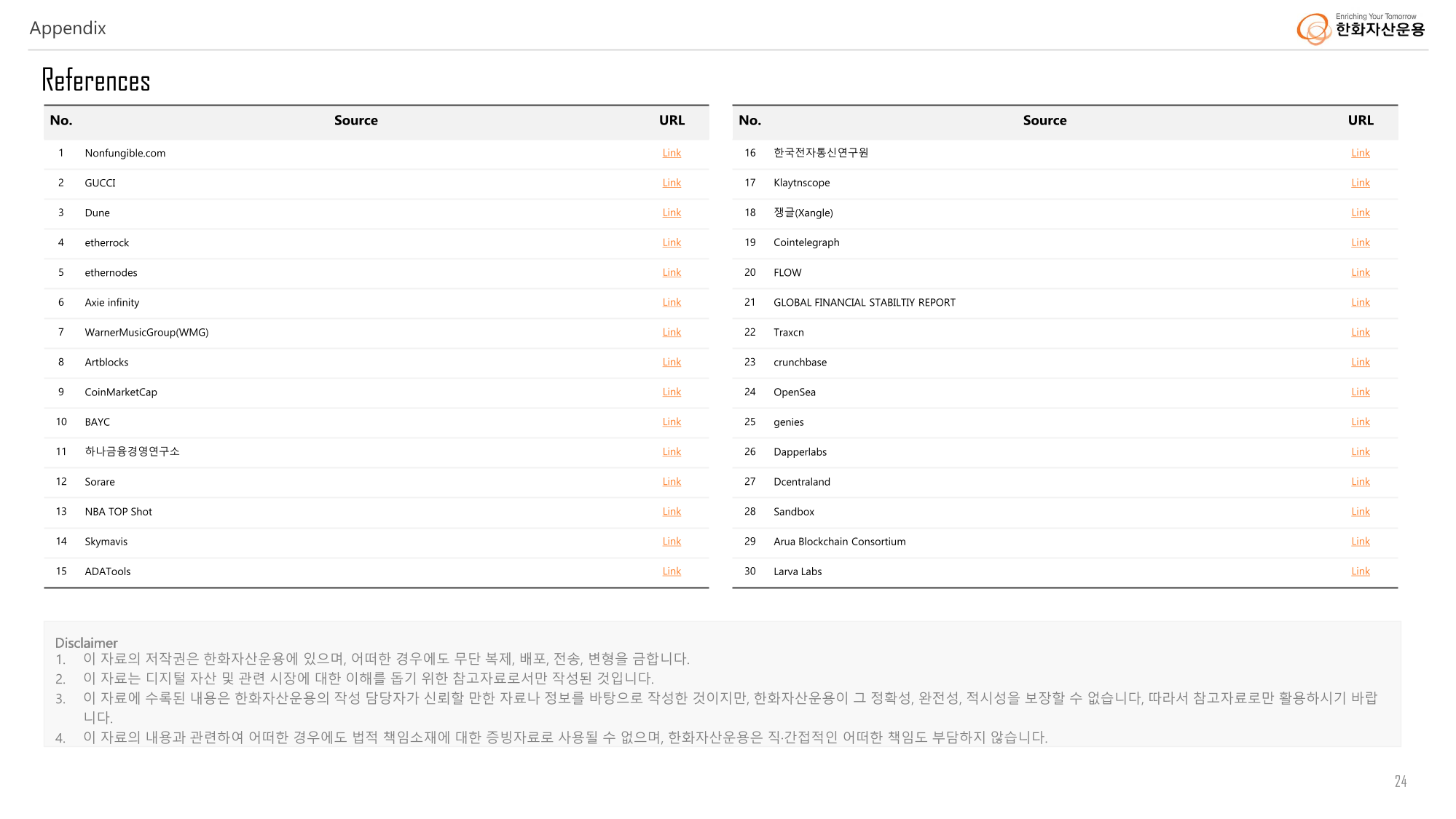 한화자산운용과 크로스앵글은 디지털 자산시장에 대한 심도있는 리서치를 통해 투기문화를 근절하고 객관적이고 신뢰할 만한 정보를 제공할 계획입니다. 양사가 협력하여 매달 디지털 자산 시장에 대한 보고서를 발간하고 관련 웨비나를 정기적으로 진행할 예정입니다. 많은 관심과 성원 부탁드립니다.